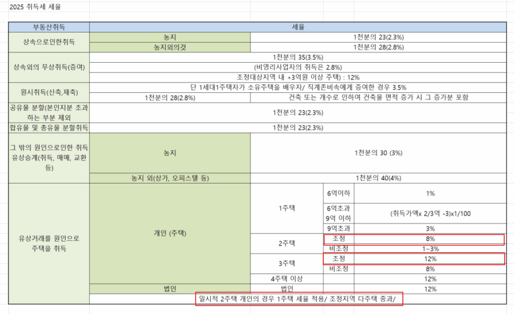 - 조정지역 2주택: 3%+5% = 8%